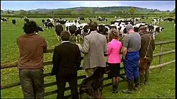 When Ged and Brian release Rocky into the field with the cows, they're in the field with him. However, they're then seen approaching the gate outside the field whilst Rocky is in the field.