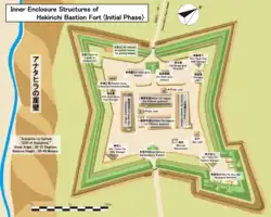 Hekirichi Bastion Fort (Japanese: 戸切地陣屋, romanizedHekirichi Jinya, as historic site name: Hekirichi Bastion Fort of Matsumae clan site (松前藩戸切地陣屋跡, Matsumae Han Hekirichi Jinya ato) was a fortified administrative center of the Matsumae clan during the late Edo period, located in present-day Nozaki, Hokuto City, Hokkaido.[1][2] It was the first in Japan to adopt a star-shaped bastion fort design based on European bastion-style fortification techniques[3] and the army base selection and structure for artillery defense according to 19th-century European military theory.[4] The name "Hekirichi" originates from the Ainu language "peker-pet" (meaning "beautiful-river" or "bright-river")[nb 1] and refers to the area surrounding the Hekirichi River, which flows west of the fort.