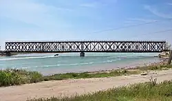 Henichesk (Ukrainian: Генічеськ, IPA: [ɦeˈn⁽ʲ⁾itʃesʲk]; Russian: Геническ, romanized: Genichesk, IPA: [ɡʲɪˈnʲitɕɪsk]) is a port city along the Sea of Azov in Kherson Oblast, southern Ukraine. It serves as the administrative centre of Henichesk Raion. Since 9 November 2022, it has served as the temporary administrative centre of the Russian occupation administration in the region. Henichesk also hosts the administration of Henichesk urban hromada, one of the hromadas of Ukraine.[1][2] In January 2022, Henichesk had an estimated population of 18,889.[3]