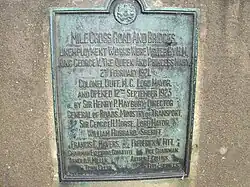 Plaque at Mile Cross bridge, Norwich opened by Maybury in 1921