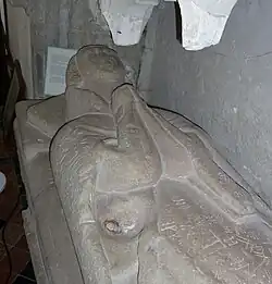 Henry died on 8 August 1171.[7] Among his gifts to Cluny, was a pyx set with gems in the choir.[16] Henry of Blois is now buried in Winchester Cathedral in a plain stone crypt in the choir, but there is a controversy because some sources claim he was buried at Cluny. Recent research indicates he was also entombed for a time in a small church (St Mary the Virgin) at Ivinghoe, Buckinghamshire. One explanation describes his heart enshrined at Cluny while his corpse and other artifacts were moved from Ivinghoe to Winchester in the 17th century. For many years his sarcophagus was thought to be that of William II, son of William the Conqueror. In the Antiquities, William of Malmesbury who knew the bishop well, described him, saying, "Yet, in spite of his noble birth he blushes when praised."