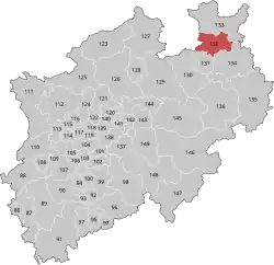 Herford – Minden-Lübbecke II is located in eastern North Rhine-Westphalia. As of the 2021 federal election, it comprises the entirety of the Herford district and the municipality of Bad Oeynhausen from the Minden-Lübbecke district.[1]