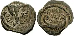 The coinage of Herod Antipas was minted in four denominations, with the inscription 'ΤΙΒΕΡΙΑC' on the reverse within a wreath for those minted in his years 24, 33, 34, and 37. The obverse has the Greek inscription "Herod the Tetrarch" (ΗΡΩΔΟΥ ΤΕΤΡΑΡΧΟΥ) with an upright palm branch.[7] A variant type depicted an upright reed.