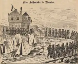 Burial of Austro-Hungarian officer in Crkvice (engraving from Austrian printer, May 1882)