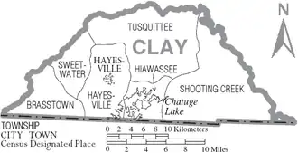 Hiawassee is the central most and smallest township of Clay County, North Carolina, United States. It is situated between Hayesville Township to the west, Shooting Creek Township to the east and Tusquittee Township to the north. The other two are Brasstown and Sweetwater.