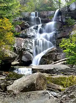 Trillium Gap Trail: Another of the five trails that ascends Mount Le Conte, the Trillium Gap Trail first passes behind Grotto Falls at 1.3 miles (2.1 km), the only waterfall in the park where this is possible. Just like at the Rainbow Falls Trail, the hike to the waterfall will be quite busy under normal circumstances, but, from points onward of the falls, will be much less populated. Trillium Gap lies 2.9 miles (4.7 km) along the trail at a junction with the Brushy Mountain Trail, where hikers can choose to pay a visit to Brushy Mountain or continue on 3.6 miles (5.8 km) to the summit of Mount Le Conte.