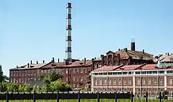 Ancillary industries emerged, including chemical, mechanical, metalworking, harness-making, and belt-making enterprises. In the 1820s, Alexey Baburin founded a major chemical plant in Vorobyovo near Ivanovo, pioneering industrial production of wood vinegar for fabric finishing in Russia.[68] Machines first appeared in Ivanovo's competitive finishing sector. In 1826, a cylindrical printing machine, replacing block printers, was installed at D. I. Spiridonov's manufactory in Vorobyovo.[69][70] In 1832, the Garelin factory introduced the first steam engine. From the late 1840s, large enterprises adopted perrotine printing, and enabling multicolor printing.[71] Soon, the first mechanical cotton-spinning factory was established.[72]