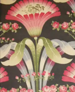 Fabric finishing techniques varied: dyeing entire cloth by boiling, dyeing individual threads before weaving, or block printing patterns. The latter was the most complex.[40] Block printing, which emerged in Ivanovo in the late 17th century,[38] was aided by numerous streams and rivers essential for washing dyed fabrics. Initially, patterns were printed in one color using a single wooden block, then hand-painted with bright colors. Later, multiple blocks were used for multicolored designs.[41] By the early 18th century, Ivanovo had trade links with Astrakhan, facilitating commerce with the East. Eastern culture, alongside local and European traditions, influenced fabric designs, with the paisley motif becoming common.[41][42] Recognizing Ivanovo's economic importance, Peter I decreed in 1705 the establishment of a customs house to collect duties.[43]