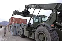 The war in Vietnam also saw the large-scale employment of containerisation. A standard steel container was designed called the Conex box that was capable of holding 4,100 kilograms (9,000 lb) and suitable for loading onto a semi-trailer or railway flat car. Eventually 150,000 of them were sent to Vietnam. The use of containers reduced port congestion and handling time, and saved money on packaging. There was less damage to cargo in transit and reduced loss through pilferage. The containers could be used in lieu of covered storage. The drawback of using containers was that they required special equipment to handle them.[185] This became less of a problem as containerisation spread through the world, but in 1999 the International Force East Timor (INTERFET) found that East Timor had no facilities for handling containers, and special container handling cranes had to be designed and manufactured in New Zealand.[186]
