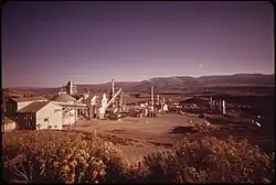 In the United States the government started to create the Naval Petroleum and Oil Shale Reserves in 1909.[52] The reserves were seen as a possible emergency source of fuel for the military, particularly the Navy.[48] The government reserved the Roan Plateau near Rifle, Colorado which later became a federal demonstration and test site.[48] First attempt to produce oil from the western deposits was made in Nevada by local businessman Robert Catlin by acquiring oil-shale properties in the 1890s and erecting the first retorts in 1915 and 1916. Although the attempt was commercially unsuccessful, in 1917 he incorporated Catlin Shale Products Company which made several unsuccessful attempts to sold shale oil products until it was dissolved in 1930.[31] The first attempts to exploit the Green River Formation deposit was made by establishment of The Oil Shale Mining Company in 1916.[31] In 1917, they erected the first commercial retort at the head of Dry Creek, near De Beque, Colorado.[53] However, also these attempts were unsuccessful and by 1926 the company had lost its property.[31] In addition, companies like Cities Service, Standard Oil of California, Texaco and Union started their oil shale operations in 1918–1920.[31] In 1915–1920 about 200 companies were established to exploit oil shale and at least 25 shale oil retorting processes reached to the pilot-plant stage. Discoveries of the large quantities of petroleum in eastern Texas ended the oil-shale boom.[34] One of technological achievements before World War II was invention of the N-T-U retort. In 1925, the NTU Company built a test plant at Sherman Cut near Casmalia, California.[54][55] In 1925–1929, the retort was also tested by the United States Bureau of Mines in their Oil Shale Experiment Station at Anvil Point in Rifle, Colorado.[31][54][56]