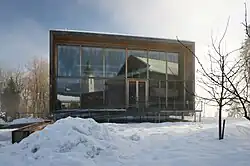 The museum occupies the upper floor of the Feuerwehrhaus und Kulturhaus ("Fire Brigade House and Culture House"), which was built from 1998 to 2000 by the local authorities. The local fire brigade occupies the large basement, there is a seminar room on the ground floor, and a local brass band is also based here.[1] The upper section is made of wood (local silver fir), and the building has a large glass frontage.[8]