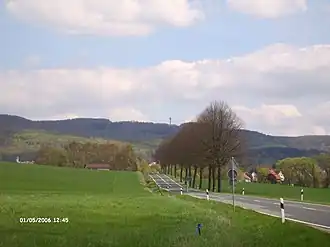 The Hohe Hagen seen from Scheden. The B 3 is in the foreground.