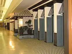 Abercrombie & Fitch originally designed Hollister Co. stores to simulate the appearance of vintage beach shacks in an indoor shopping mall.[20] Exterior décor included shuttered windows and light and dark brown pattern walls. A teal boardwalk with three steps leads to the entrance. The interior of the store is mostly concealed from outside view by a wall. Abercrombie & Fitch experimented with shuttered windows when they created Hollister Co. and the concept was eventually expanded to the Abercrombie & Fitch brand.[21]
