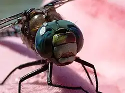 Holoptic refers to one of the ways in which the arthropod eye develops, particularly the eyes of various species of insects. Unlike dichoptic and cycloptic eyes, holoptic eyes meet along the median dorsal line of the head, in many species nearly covering the exterior of the head. Holoptic eyes are typical of several Dipteran males, in particular some Syrphidae, Tabanidae, Pipunculidae, and Acroceridae. Some other insect orders that include species with holoptic males and some in which the females are holoptic as well, include the Coleoptera, Anisoptera, and Archaeognatha.