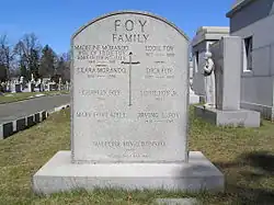 Holy Sepulchre Cemetery is the resting place of notables including Eddie Foy and his family of famous Vaudeville actors and actresses, memorialized in the 1955 film The Seven Little Foys.