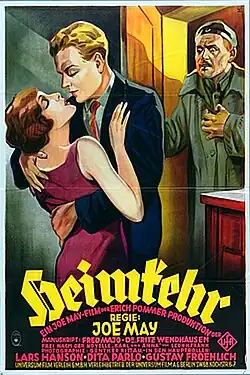 Homecoming (German: Heimkehr) is a 1928 German silent war drama film directed by Joe May and starring Lars Hanson, Dita Parlo, and Gustav Fröhlich. A sound version was prepared with the help of Paramount Pictures. While the sound version has no audible dialog, it was released with a synchronized musical score with sound effects using both the sound-on-disc and sound-on-film process. The sound version was more widely exhibited than the silent version due to the general public's apathy to silent films.
