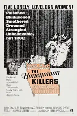 The Honeymoon Killers is a 1970 American crime film written and directed by Leonard Kastle, and starring Shirley Stoler and Tony Lo Bianco. Its plot follows an overweight nurse who is seduced by a handsome con man, with whom she embarks on a murder spree of single women. The film was inspired by the true story of Raymond Fernandez and Martha Beck, the notorious "lonely hearts killers" of the 1940s.