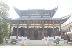 During the Qing dynasty (1644–1911), Hong Xiuquan led the Taiping army through Changsha and saw the "imperial seal" on the plaque in the front hall.[3] Hong Xiuquan ordered his subordinates to demolish the front hall and mountain gate.[3] His subordinates saw the inscription "Hong" on the plaque, and Hong Xiuquan ordered his subordinates to rebuild the temple.[3] The rear hall of Hongshan Temple was donated and built by Rao Dongfang, the magistrate of Changsha.[4]
