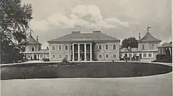 The ruined castle was rebuilt around 1840 into a modern, late-classical, two-story palace by Kornel Horodyski, another owner originally from Volhynia, who converted the castle's two towers into pavilions. The palace during this period was decorated with grandeur both outside and inside. The rooms were decorated with paintings of the Dutch school, there was a large viewing terrace on the first floor, inside there were tiled stoves, fireplaces and chandeliers, and a palace garden at the back of the building. The building was damaged during World War I.[2][3][4]