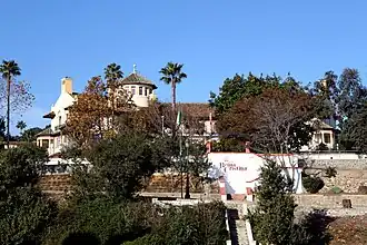 The Hotel was built in the 1890s in response to the housing needs arising from the opening of the Algeciras-Bobadilla railway and opened in 1901. The original colonial English style building was funded by Alexander Henderson, 1st Baron Faringdon, via his company the Algeciras Gibraltar Railway Company.[1] The original hotel (designed by Thomas Edward Collcutt) burned down in 1928 but it was rebuilt with one floor designed by architect Guillermo Thompson. It reopened in April 1932.[1] The new building kept the overall structure of English colonial style and added elements typical of Andalusian architecture as befitted the eclectic movement of the time. The hotel is built around a central courtyard with landscape gardens. This building plays an important part of the history of Algeciras, especially during the Conference of Algeciras in 1906 and during World War II when spies would monitor the military movements in Gibraltar. It has also been visited by many famous people over the years, including Arthur Conan Doyle, Charles de Gaulle, Winston Churchill and Orson Welles.[2]