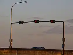 The Department of Main Roads undertook a further upgrade of the bridge's tidal flow system.[9] Commissioned in 2002 at a cost of $1.8 million, this upgrade included the replacement of the overhead arrow and cross signals with brighter, LED displays, monitoring of traffic flows and conditions with supervision of the system data and view of the bridge by CCTV at the remote Traffic Management Centre in Woolloongabba, Brisbane. Operators were for the first time also able to close and open lanes as required from the remote location.[10]