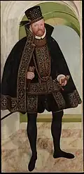 9. ^ a b During the Schmalkaldic War, the Albertine Duke allied with Charles V, Holy Roman Emperor and the Ernestine Elector opposed him. After the Emperor's victory, he exchanged the dignities (and territories) of both lines, promoting his ally and depromoting his opponent.