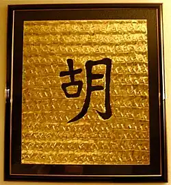Hu () is a Chinese surname. In 2006, it was the 15th most common surname in China.[1][2] In 2013, it was the 13th most common in China, with 13.7 million Chinese sharing this surname.[3] In 2019, Hu dropped to 15th most common surname in mainland China.[4]