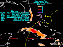 In the early 1950s, Atlantic tropical cyclones were named via the Joint Army/Navy Phonetic Alphabet. Hurricane Fox of 1952 was the final Atlantic tropical cyclone to be designated with this naming system, and a female list of tropical cyclone names was utilized in the 1953 Atlantic hurricane season.[24] After the stronger 1917 Pinar del Río hurricane, Hurricane Fox was Cuba's second most intense landfall until Hurricane Michelle struck the island in 2001.[3] Originally, the 1917 hurricane was believed to have been a Category 3 hurricane prior to the Atlantic hurricane reanalysis, which made Fox the second Category 4 landfall after the 1932 Cuba Hurricane.[25] At the time, Fox was the fourth most intense hurricane to strike Cuba in terms of atmospheric pressure; only the 1917, 1924, and 1932 storms were stronger at one point in their life spans.[26]
