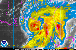 ![]() Hurricane Hermine near peak strength, just before landfall in Florida, on September 1 | |