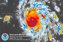 Hurricane Marilyn on crossing the Virgin Islands on September 15, 1995.