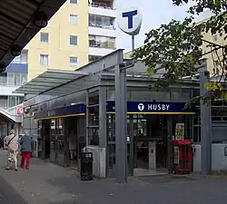 Husby is a station on the blue line of the Stockholm metro, located in the district of Husby, northern Stockholm. The station was inaugurated on 5 June 1977 as part of the extension from Hallonbergen to Akalla.[2] The distance to Kungsträdgården is 15 km (9.3 mi).