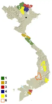 - ‘Uplands’ is a term used by the Committee for Ethnic Minorities (CEM) and refers to 20 highland and midland mountainous provinces in central and northern Vietnam. In addition, there are 114 upland districts in 26 other provinces. The uplands have a complicated topography and are generally inhabited by ethnic minority groups.[2]