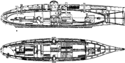 The most important innovation in the Ictíneo II was its air independent propulsion for underwater navigation. A reaction of zinc, manganese dioxide and potassium chlorate heated the boiler of a steam engine to provide propulsion and illumination and the oxygen released by the reaction could be used for breathing.[1] Monturiol purchased a six-cylinder steam engine and divided it in half; one half was powered by a coal-burning boiler for surface propulsion while the other half was powered by a separate boiler heated by his chemical mixture.[3]