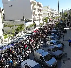 In 2003, the Technological Educational Institute (TEI) of Marketing and Commerce was opened in Ierapetra.[8] In the wake of the Greek financial crisis, in early 2013, the government had to decide whether to merge or close several schools (in a plan named "Athena" after the Greek goddess of wisdom), including TEI of Marketing in Ierapetra, sparking protests. Around 7,000 people staged a peaceful protest on 8 February 2013 holding candles and torches. Local authorities and local media described the march as "the biggest rally in Ierapetra to date."[9] On 12 February 2013, the town of Ierapetra witnessed a big protest rally, as thousands of people took to the streets once again, demanding the TEI school to stay in town and the hospital to be upgraded.[10]