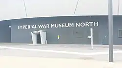 Imperial War Museum North (sometimes referred to as IWM North) is a museum in the Metropolitan Borough of Trafford in Greater Manchester, England. One of five branches of the Imperial War Museum, it explores the impact of modern conflicts on people and society. It is the first branch of the Imperial War Museum to be located in the north of England. The museum occupies a site overlooking the Manchester Ship Canal on Trafford Wharf Road,[2] Trafford Park, an area which during World War II was a key industrial centre and consequently heavily bombed during the Manchester Blitz in 1940.[3] The area is now home to the Lowry cultural centre and the MediaCityUK development, which stand opposite the museum at Salford Quays.