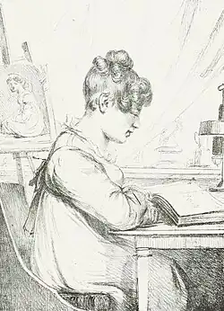 There are several portraits of Esménard in existence. One was painted by Jean-François Hollier when she was his student, and another by François-Joseph Navez, who painted all three Esménard sisters in 1815. There are two lithographs by Dominique Vivant Denon, one a group portrait (The Delights of the Country) that includes Esménard along with the novelist Sydney, Lady Morgan and the other a profile of Esménard seated and reading, with an easel and canvas behind her. There is also an Esménard self-portrait of 1839.[4][5][6][7]