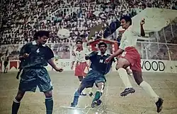 Pakistan and India national football teams rivalry often attract sizeable crowds.[20][21][22] The two teams first met at the 1952 Colombo Cup, which ended in a goalless draw and both teams crowned champions of the tournament. India first won at the consequent 1953 Colombo Cup with a 1–0 win, with Neville D'Souza scoring a goal. Pakistan men’s football team recorded its first official win over India at the 1960 AFC Asian Cup qualification in 1959, with Abdullah Rahi netting the winner.[23] In addition, both teams have faced each other two times in unofficial exhibition matches after the finalisation of the 1953 and 1955 Colombo Cup editions, with Pakistan winning both times by 1–0.[24]