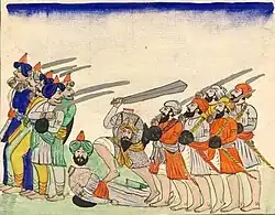 A headless Baba Deep Singh fighting the Afghan forces at the Battle of Amritsar
