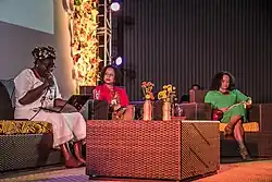 Paulina Chiziane (left), Ana Flávia Magalhães Pinto (centre), and Ana Maria Gonçalves (right) during the Festival Latinidades in 2014
