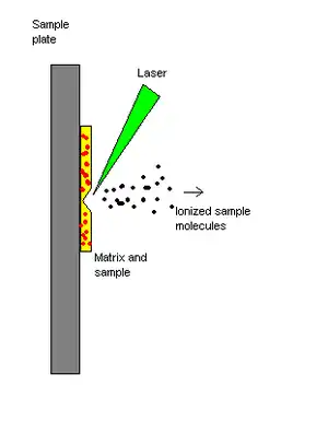 - ^ Sampson, JS; Hawkridge, AM; Muddiman, DC (2006). "Generation and detection of multiply charged peptides and proteins by matrix-assisted laser desorption electrospray ionization (MALDESI) Fourier transform ion cyclotron resonance mass spectrometry". J. Am. Soc. Mass Spectrom. 17 (12): 1712–6. Bibcode:2006JASMS..17.1712S. doi:10.1016/j.jasms.2006.08.003. PMID 16952462.