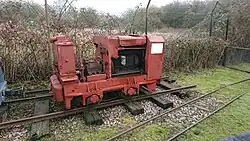 In 1971 the Northamptonshire County Council opened the Irchester Country Park, which is located on the site of the former opencast ironstone quarries. The park has a network of walks, a visitors centre and a children's play area in a grass and woodland setting. The museum was set-up within the park in 1987, inside a purpose built building to the west of the original ironstone railway maintenance yard. Access to the museum is along a footpath which follows the line of the ironstone railway trackbed. There are over 40 items of narrow gauge railway rolling stock including four steam locomotives and six diesel locomotives. A 250-metre long demonstration track with a gauge of 1,000 mm (3 ft 3+38 in) has been laid in the park.[2] The original water tank has been recreated using a tank of similar design, complete with lettering matching the original.