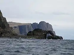 Near the west coast of Suðuroy are many skerries, some islets are all around the island also. This skerry is called Kamarið, which means "The Chamber". Beinisvørð is in the background.