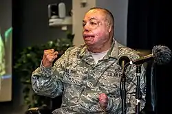 6. ^ "Severely Burned USAF Sergeant Re-Enlists After IED Blast". ABC News. February 10, 2010. Retrieved August 19, 2024.
