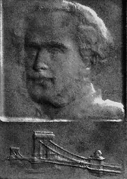 The undated medal represents the portrait of Count István Széchenyi [1] and is a reference to Ferenc Herczeg's drama "The Bridge" (1925)