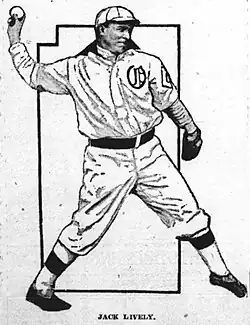 In September 1910, the Detroit Tigers purchased Lively from Oakland for the 1911 season.[7] Lively signed with the Tigers in February 1911.[8] He made his major league debut on April 16, and pitched a complete game victory over Cleveland, allowing seven hits and two runs in nine innings. E.A. Batchelor wrote that Lively used his spitball extensively: "There was no mistaking Jack's spitter, for when the batsmen connected with it the spray could be felt in the grandstand. Nothing mean about Jack. When he moistens the ball, the sanitary commission goes into hysterics. Besides the saliva, the ball had a nice break, and it was varied by mixture with a fast one, heaved without hydraulics."[9] He played in 18 games for the 1911 Tigers, compiling a record of 7–5 with 10 complete games and a 4.59 ERA. He had a .256 batting average with two doubles, a triple, and four RBIs. Lively played his last major league game on October 6, 1911.[1]
