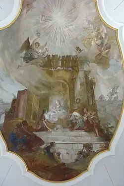 Jakob Huwyler II (30 August 1867 – 27 April 1938), Swiss artist, was born in Sursee LU, the son of Jakob Huwyler I, another painter. He is famous for painting the frescos in the Catholic church of St. Andreas[1] in Gremheim (Dillingen, Germany).