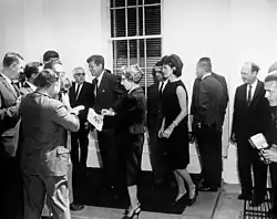 17. ^ "J K Atherton, photographer (RHS) as President J F Kennedy and Vice President Lyndon B Johnson arrive to greet the winners of the 20th Annual Westinghouse Science Talent, Mar 6". Alamy Images. 1961.