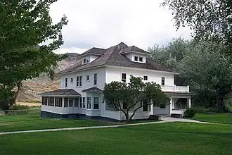 The main house is the most prominent building at the ranch. It was built sometime between 1915 and 1918. It is based on architectural designs from The Radford American Homes catalog, published 1903 by the Radford Architectural Company of Chicago. Cant hired two carpenters, Andrew Cress and Clarence Bisbee, to oversee construction of the house. The builders combined design features from several Radford plans to create the Cant's ranch house.[13][8]