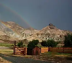 The Cant Ranch national historic district is located along the John Day River in northeastern Oregon. The elevation of the ranch is 2,244 feet (684 m) above sea level. Sheep Rock is a prominent geographic feature located approximately 1 mile (1.6 km) southeast of the ranch complex and can easily be seen from the ranch. There is a 0.5-mile (0.80 km) hiking trail, known as the Sheep Rock Overlook Trail, that begins at the Cant Ranch and leads to an overlook with a view of the valley.[16]