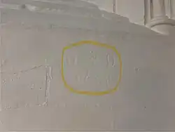 Markings in wall showing place of Durham’s burial